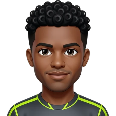 MAKE HIM HAVE BLACK SHORT CURLY HAIR AND CHANGE HIS SKIN COLOR TO WHITE AND ADD YELLOW NEON CLEATS emoji