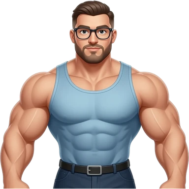 make a guy that is strong with very very strong muchles that is wearing glasses emoji
