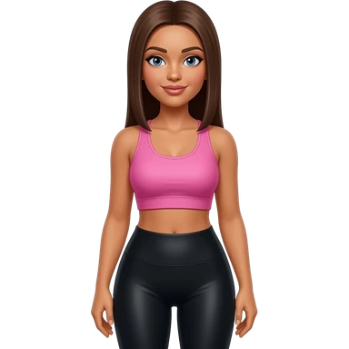 make a super hot girl who is tan and has brown straight hair a pink crop and black spandex emoji