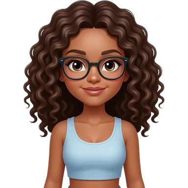 make a super hot girl who is tan and has brown curly hair with glasses wearing a crop emoji