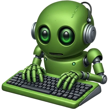 An emoji of a green robot melting away covered in thick green sludge sad and depressed, crawling out of a keyboard. emoji