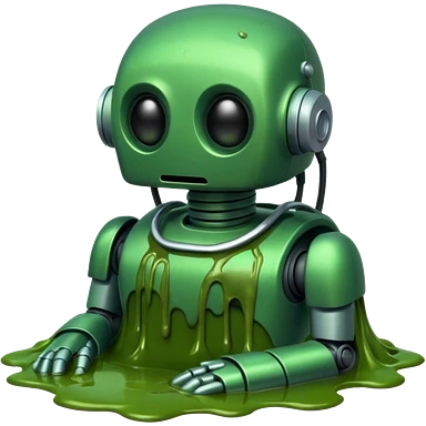 An emoji of a green robot melting away covered in thick green sludge sad and depressed emoji