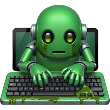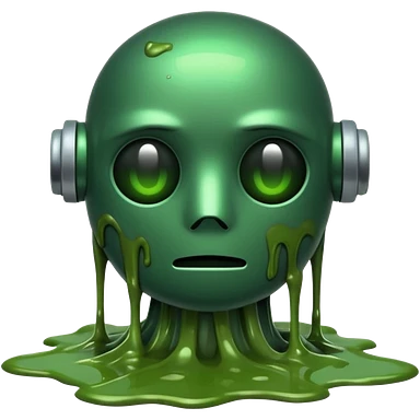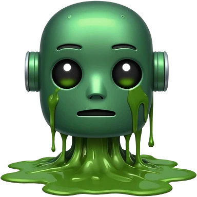 An emoji of a green robot melting away covered in thick green sludge emoji