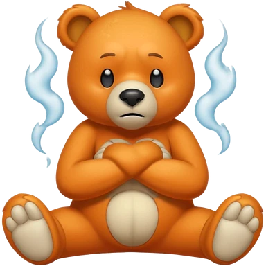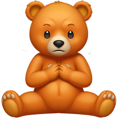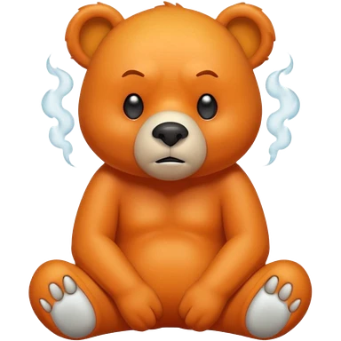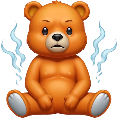 Create a orange friendly bear, make him look like from a kid cartoon. Show his whole body. Make him look shy and cross his leg while he is standing. make him look mad and steam coming out of his ears emoji