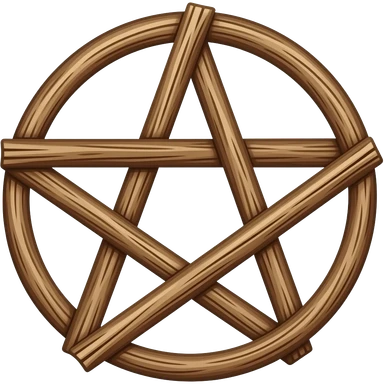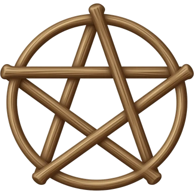 a brown rustic bent natural wooden sticks That make up an upwards pentagram That has 5 points. . emoji