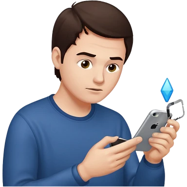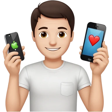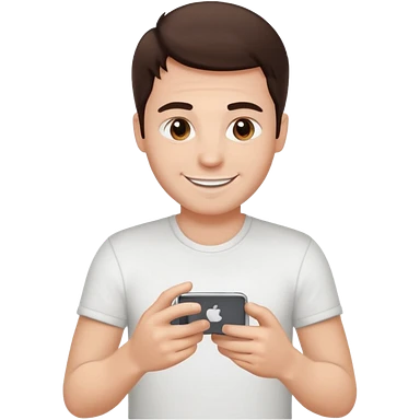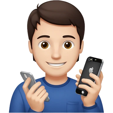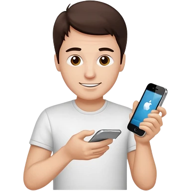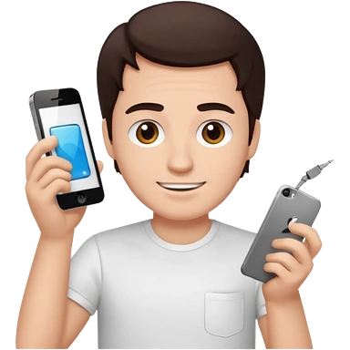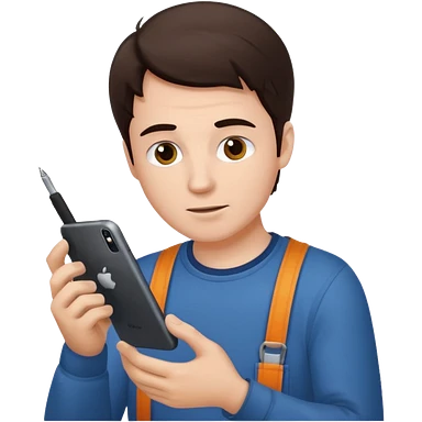 make a white guy with dark brown hair repairing an iphone happy emoji