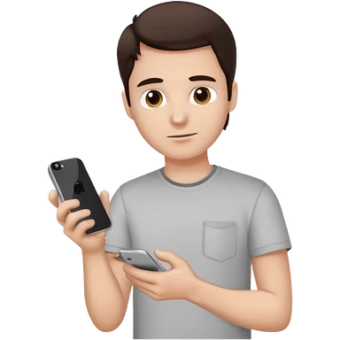 make a white guy with dark brown hair, with a simple white o grey shirt, repairing an iphone, un tecnico emoji