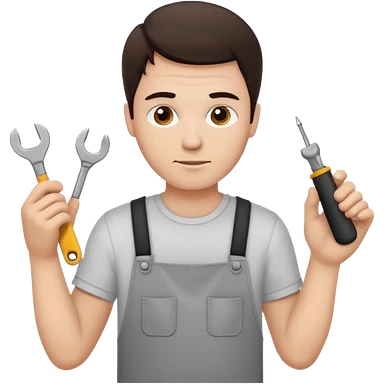 make a white guy with dark brown hair repairing an iphone emoji