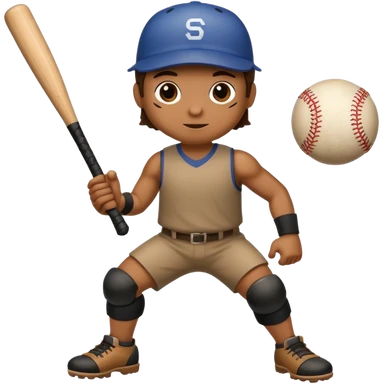 Humanoid piece of wood holding a baseball bat emoji
