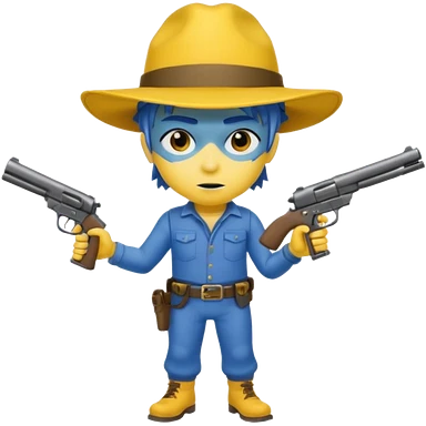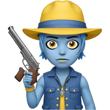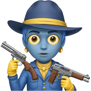 Make a yellow emoji of a guy holding a gun and the guns barrel is in his mouth while crying blue water emoji | AI Emoji Generator