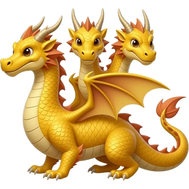 Make a yellow dragon with 3 head and 1 body.jusy 3 heads each connected to one body emoji