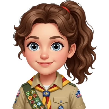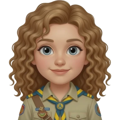 Make an emoji a women teacher 40 jear dutch with witch 6 corner glasses and between brown and blonde curly mi long hear with an t-shirt with small green pink and withe purple vertical stripes and a blue jeans witch addidas shoes brown and yellow emoji | AI Emoji Generator