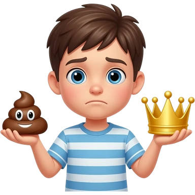 MAKE AN EMOJI AN BOY IN ONE HAND POOP IN ONE HAND CROWN . AND THINING WHICH ON ESHOULD HIM CHOOSE AND CONFUSING. MAKE HIM SAYIN WHICHONE HSOULD I CHOOSE I THINK I SHOULD CHOOSE POTY OR CROWN. emoji | AI Emoji Generator