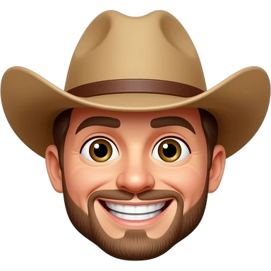 Make an emoji of a smiling happy face with gold teeth and a cowboy hat. emoji