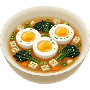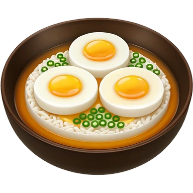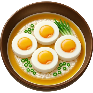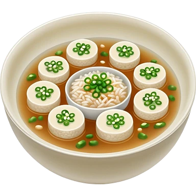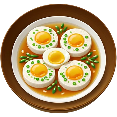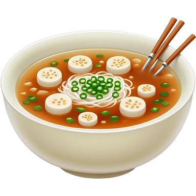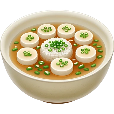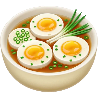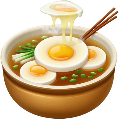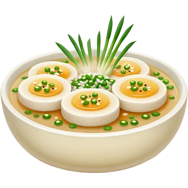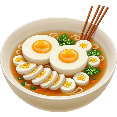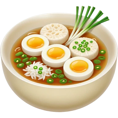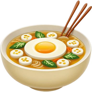 Make an emoji of tteokguk, a traditional Korean food. Okay, take the eggs out of that picture and put rice cakes in it. Make the soup white emoji | AI Emoji Generator