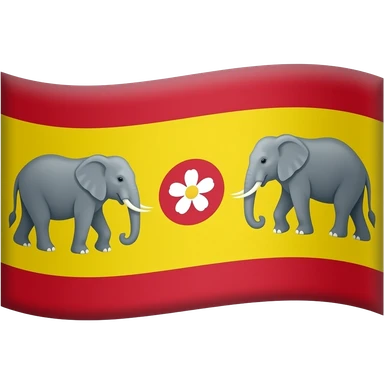 make an flage that up and down are red and the center wat yellow and make two elephant stand in the yellow part and make center an round that color is red and make an flower in that red circle the two elephants are standing and make the flower like hibiscus and shade it emoji | AI Emoji Generator