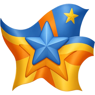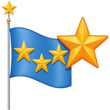 Flag Emoji, as a horizontal duo color, blue on top, orange on the bottom, and in between the two colors, there are 12 small, yellow, 5-pointed stars, running along the border of the two colors. Add one extra 5-pointed yellow star, but make it big, and directly in the middle of the flag. emoji