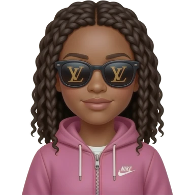 make a black girl with straight hair with tiny curls pink nike zip up with Louis Vuitton sunglasses emoji