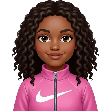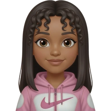 make a black girl with straight hair with some curls with pink nike zip up emoji