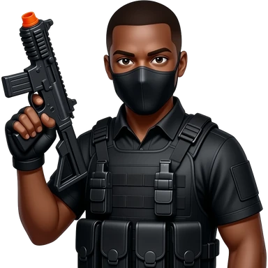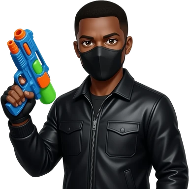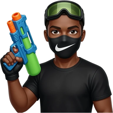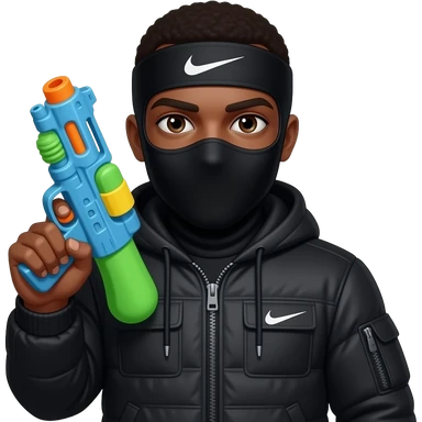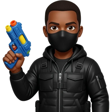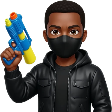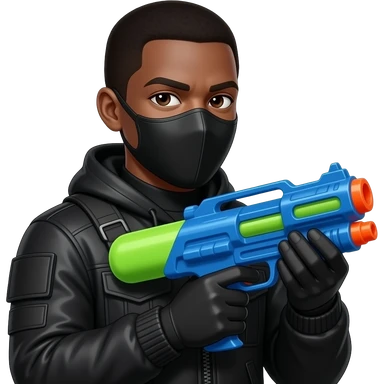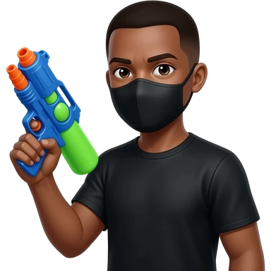 Make him appear to be African-American in all black, but make him holding a water gun wearing a robber mask emoji | AI Emoji Generator