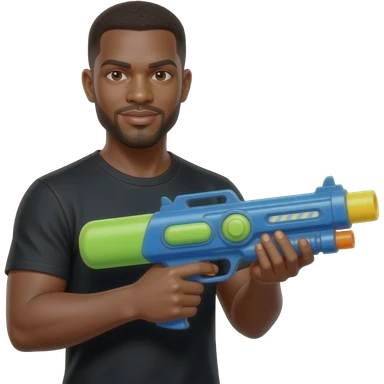 Make him appear to be African-American in all black, but make him holding a water gun emoji