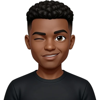 make him but black and a low taper fade in his 20’s in a all black t shirt emoji | AI Emoji Generator