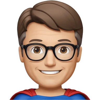 Make me a superman emoji with black glasses, light brown hair and slightly graying emoji | AI Emoji Generator