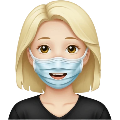 make me an emoji of a character with a tear wearing a smile face mask emoji
