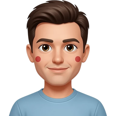 Make me an emoji of a boy with light brown skin, and his hair is voluminous and curly. And his chin is sharp with a nice jawline, and his eyebrows are more of rounded out eyebrows and they’re thick,but not too thick, and one of his eyebrows has a slit in it. And he’s wearing a green jacket with a white shirt poking out and the white shirt has a tie with gold and blue stripes on it emoji