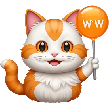 make me a cartoon cat, with some kind of sign or something with W Bubble on it emoji
