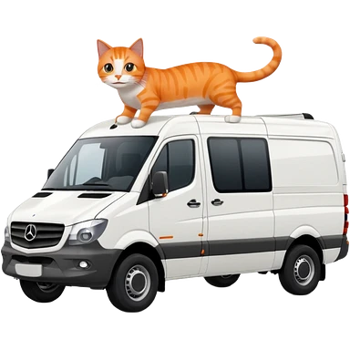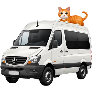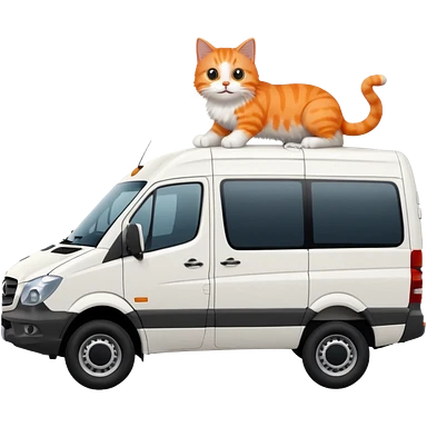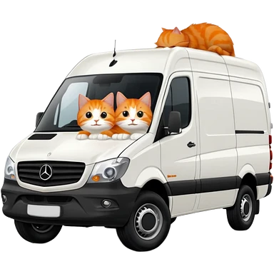 White Mercedes Benz Sprinter with Orange cats driving it emoji