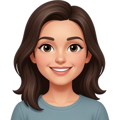 Make ai emoji of a girl with shoulder-length black hair, bangs, and very dark brown eyes. I want her wearing a black shirt. emoji