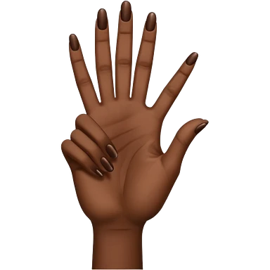 Make the ysl hand sign, but make the hand dark skin, only 5 fingers, with the index and middle finger up and the thumb up, every other finger down. Only 1 hand emoji | AI Emoji Generator