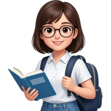 create a student, make it younger female with glasses put a book and bag emoji