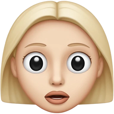 make this real, blond, medium length, blue eyes, 50s, sparkle in the eyes, fun emoji