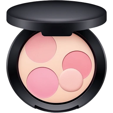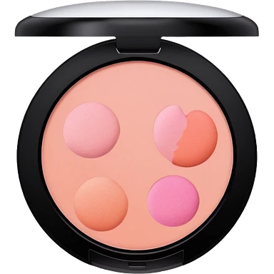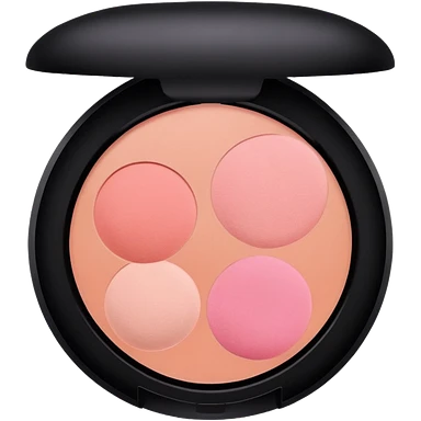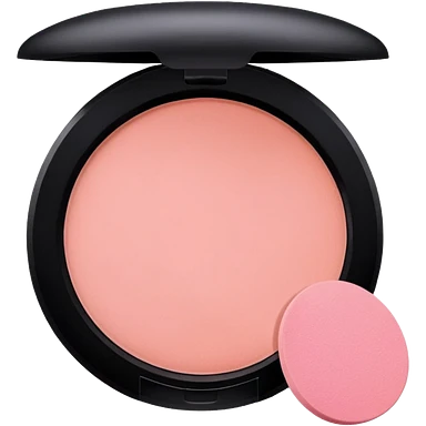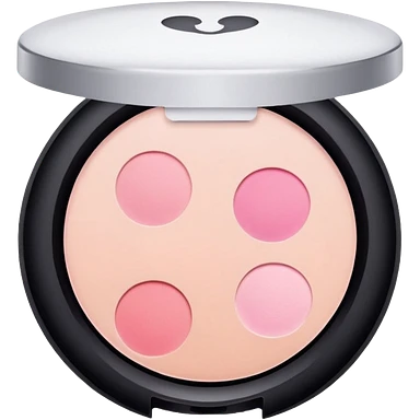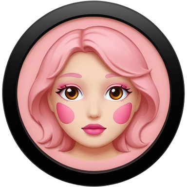 A drag queen with huge hair and a glittery dress, putting on blusher from a compact emoji
