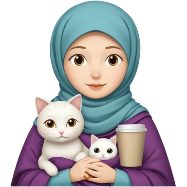 Beyaz Kediyle hijab bayan yanyana kahve beyaz battaniye emoji