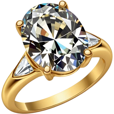 a luxurious gold diamond ring, plain band and large oval diamond stone emoji