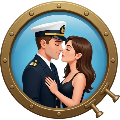 Cruise ship Porthole with male naval officer and female dressed in black making love emoji