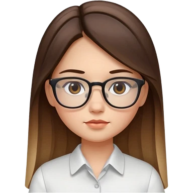 Chica blanca con cabello liso largo café claro, ojos cafe obcuro con lentes cuadrados, gordita, camisa e vestir blanca emoji
