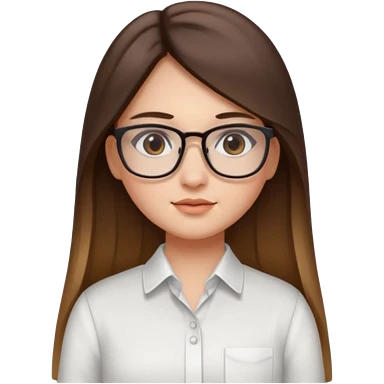 Chica de piel blanca con cabello liso largo con balayage, ojos cafe obcuro con lentes cuadrados, gordita, camisa e vestir blanca emoji