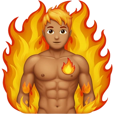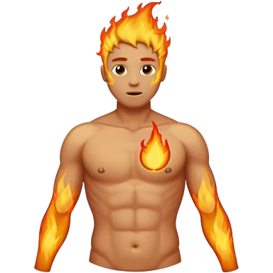 Male torso with left nipple on fire; subtle flame, no head, no arms emoji