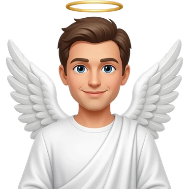 male angel with blue eyes golden hairs white shirt and golden wings emoji | AI Emoji Generator