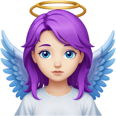 male angel with purple hair with wings emoji | AI Emoji Generator