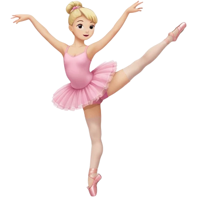 aestethic blonde girl doing ballet, with a pink tutu, bun, with a leg on the floor, and the other one in the air emoji