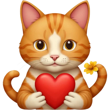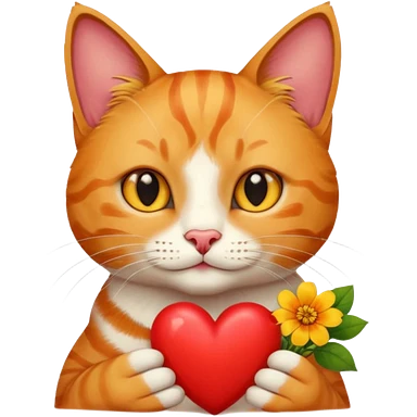 Male cat holding heart and flower emoji