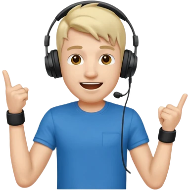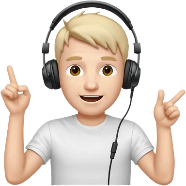 Male, excited, wearing headphone having mic, t-shirt emoji
