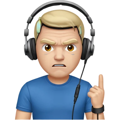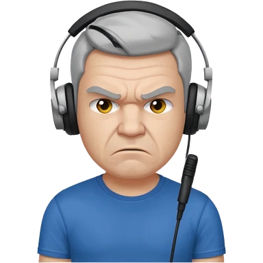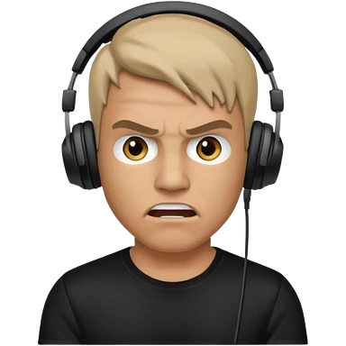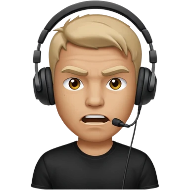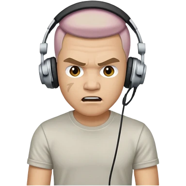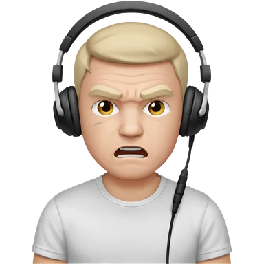 Male, angry, wearing headphone having mic, t-shirt emoji
