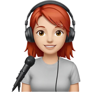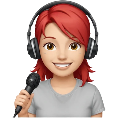 Female, happy, wearing headphone having mic, t-shirt, red hair emoji