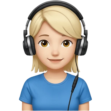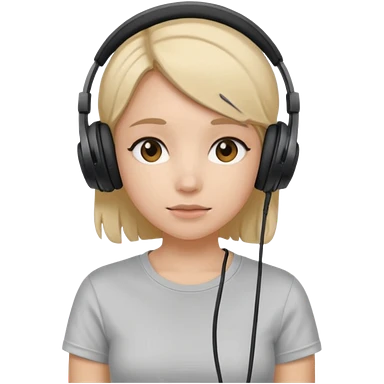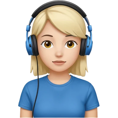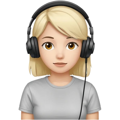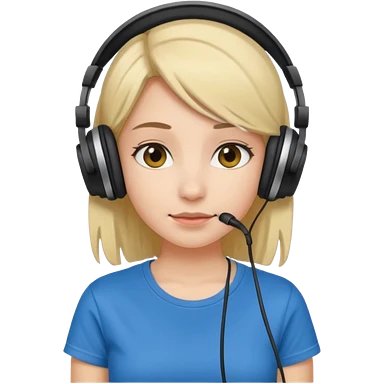Female, shy, wearing headphone having mic, t-shirt emoji